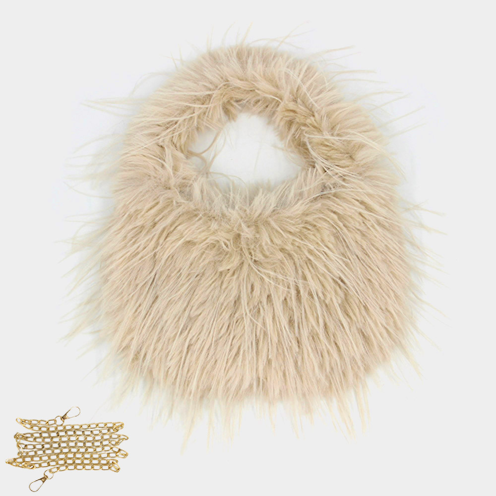 • Elevate your look with this stylish faux fur mini shoulder bag, blending plush texture with playful charm. Its compact silhouette and comfortable handle make it ideal for casual outings or evenings out, offering a perfect mix of practicality and fashion-forward flair.