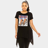 Stone Studded QUEEN Message Glam Woman Printed Half Sleeve Top