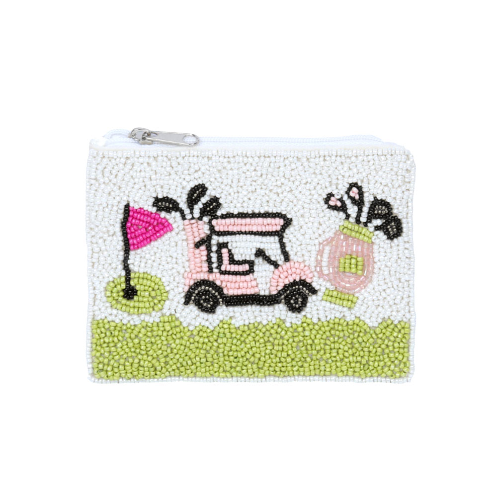 Details • Size : 5" X 3.75" (appx) • No Inside Pocket • Beads On Front Only • Bag Only (items are not included) • Zipper Closure • Celebrate your love of the game with this playful beaded coin pouch featuring a charming golf cart design. Perfect for carrying small essentials, it adds a sporty touch to any outing and makes a thoughtful gift for golf enthusiasts who enjoy fun, expressive accessories. • Made In India