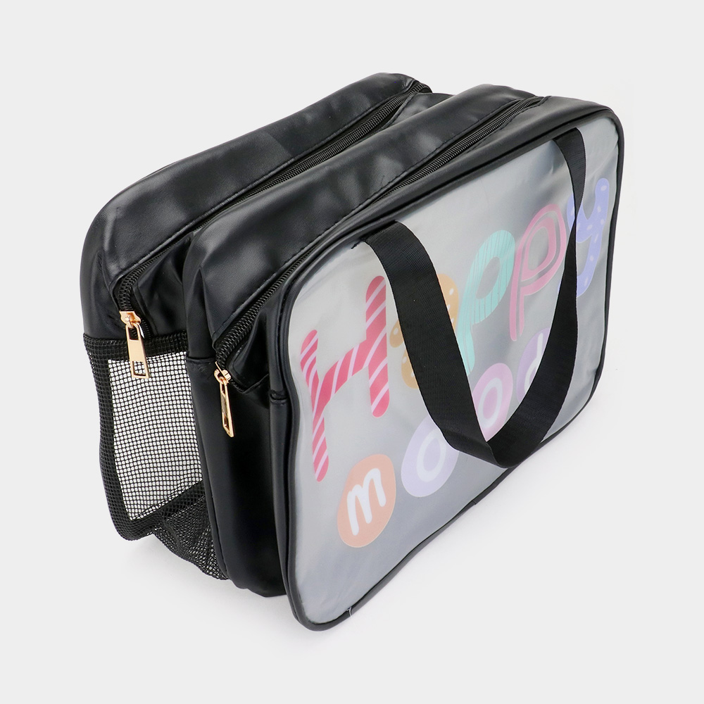 HAPPY MOOD Message Printed Translucent Mesh Divided Shoulder Bag / Tote Bag