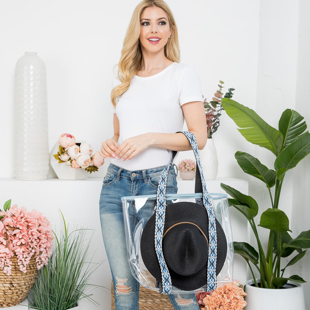 Hat Carrying Transparent Aztec Pattern Strap Tote Bag