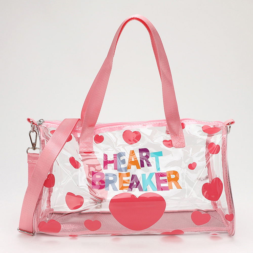 HEART BRAKER Message Heart Pattern Printed Transparent Boston Bag / Crossbody Bag