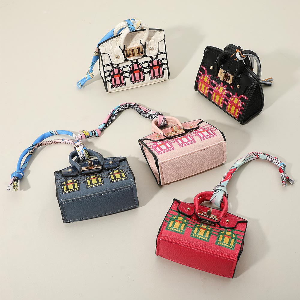 House Printed Faux Leather Elegant and Stylish Mini Purse Bag Charm