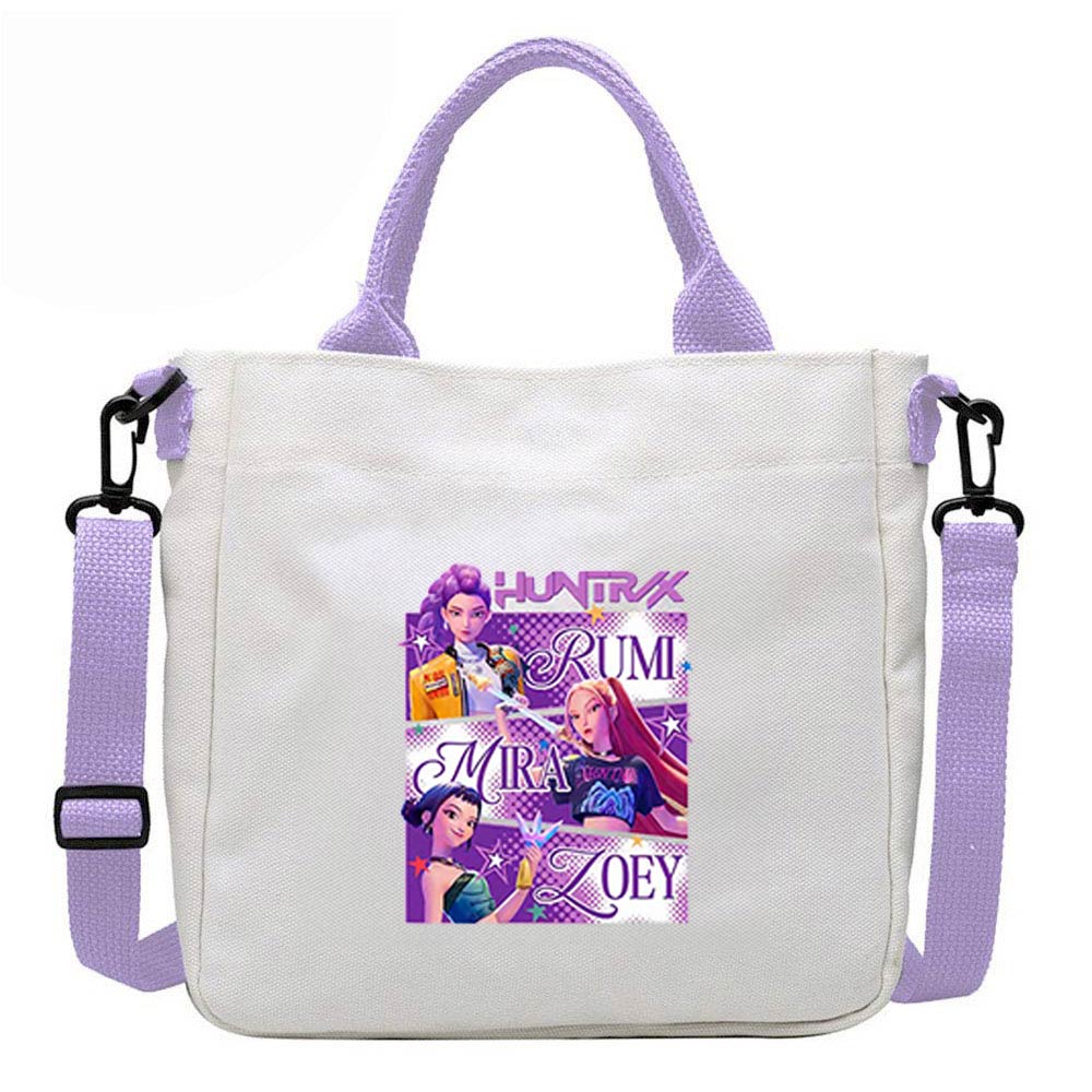 Details • Size : 9.5" X 9" X 2.25" • Top Handle Size : 3.5" L • Strap Size : 41" L / Detachable, Adjustable • Magnetic Closure • Material : 100% Polyester • Stylish tote bag featuring bold HUNTR/X character artwork with a practical carry design ideal for daily errands, shopping, events, conventions, or casual outings. Lightweight and spacious enough for essentials, making it a versatile accessory for fans and everyday use.