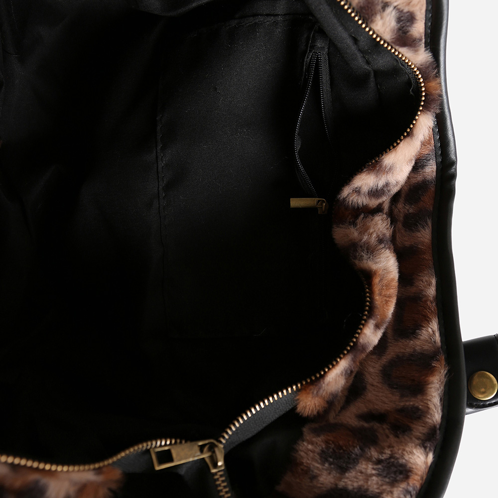 Details • Size : 21" X 12" X 4.5" • One Inside Zipper Pocket • Two Inside Slip Pockets • Zipper Closure • Material : 100% Polyester • This leopard-print tote bag combines bold style with everyday function, featuring dual handles for versatile carrying and a roomy interior for essentials. A statement piece that transitions seamlessly from casual outings to elevated looks while keeping belongings organized.