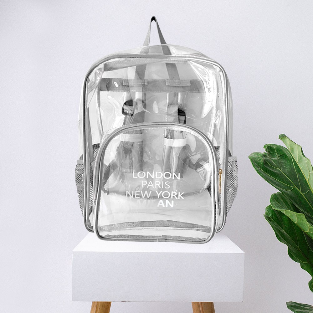 London Paris New York Milan City Name Printed Transparent Backpack Bag