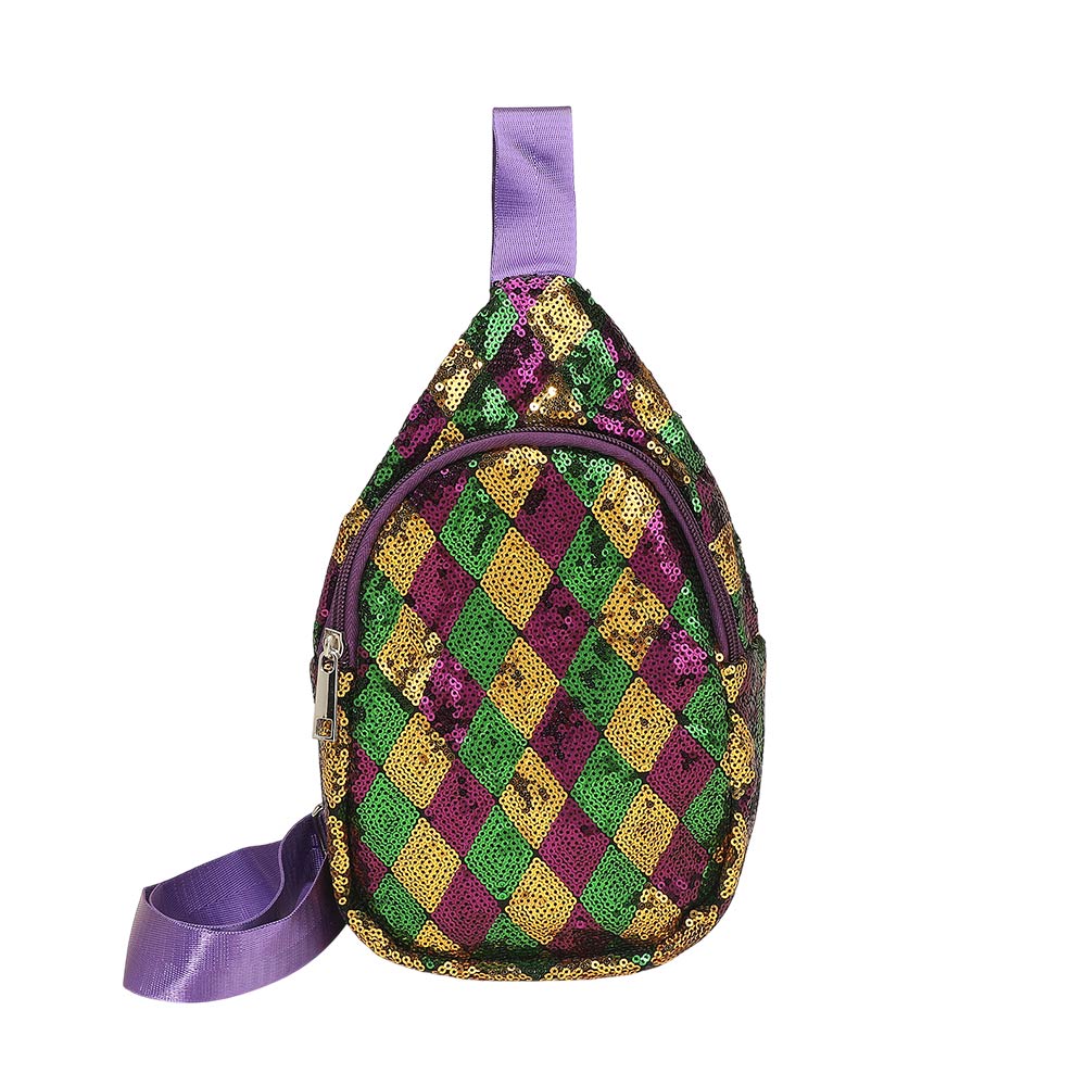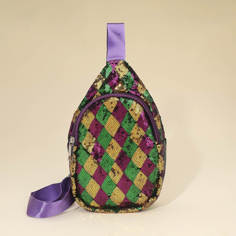 Mardi Gras Diamond Chevron Sling Bag