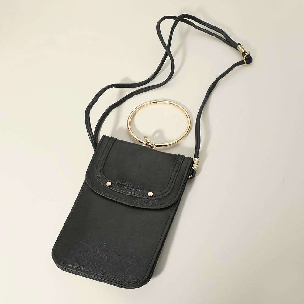 Metal Ring Handle Faux Leather Mini Phone Pouch Clutch Bag / Crossbody Bag