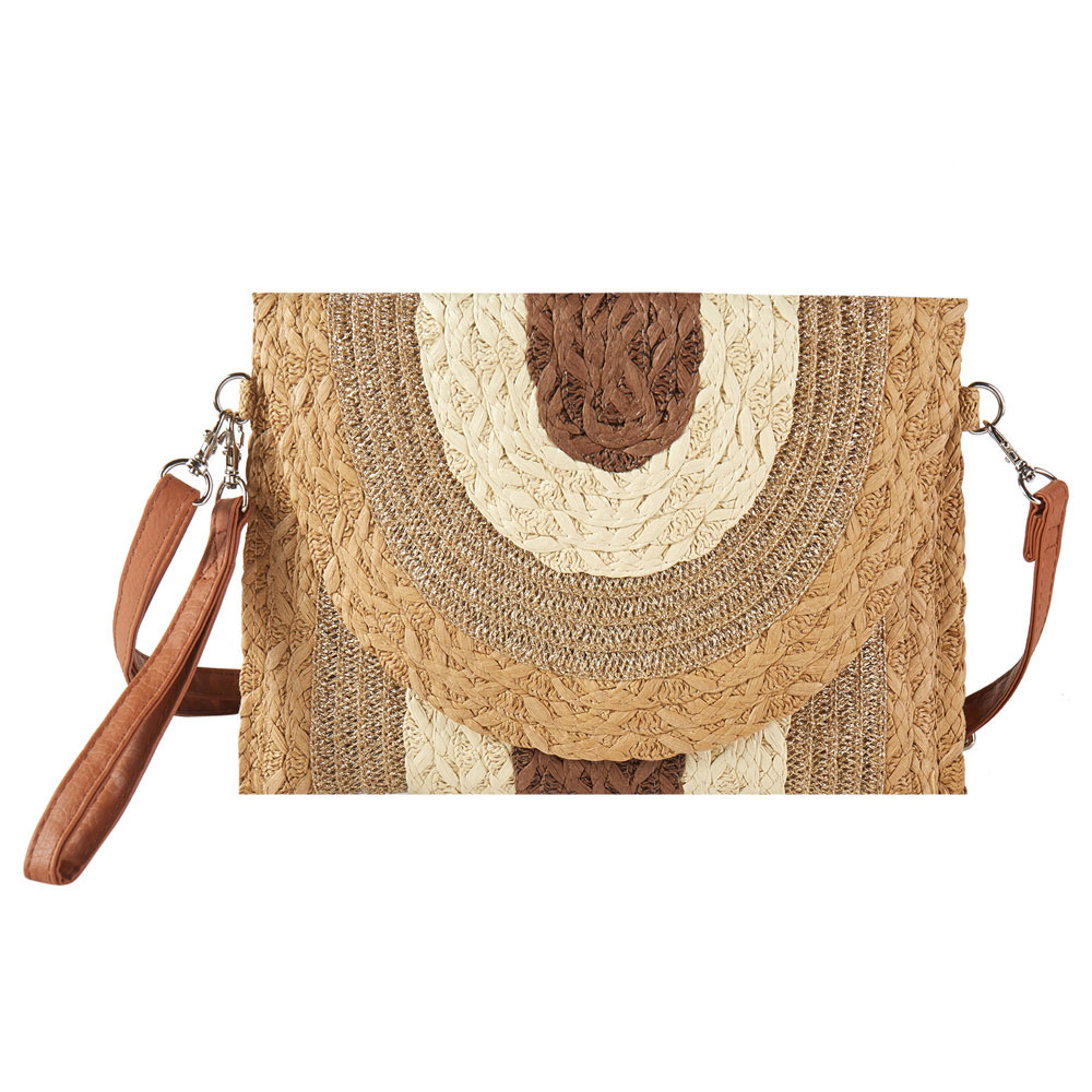 Metallic Lined Multi Color Straw Clutch / Crossbody Bag