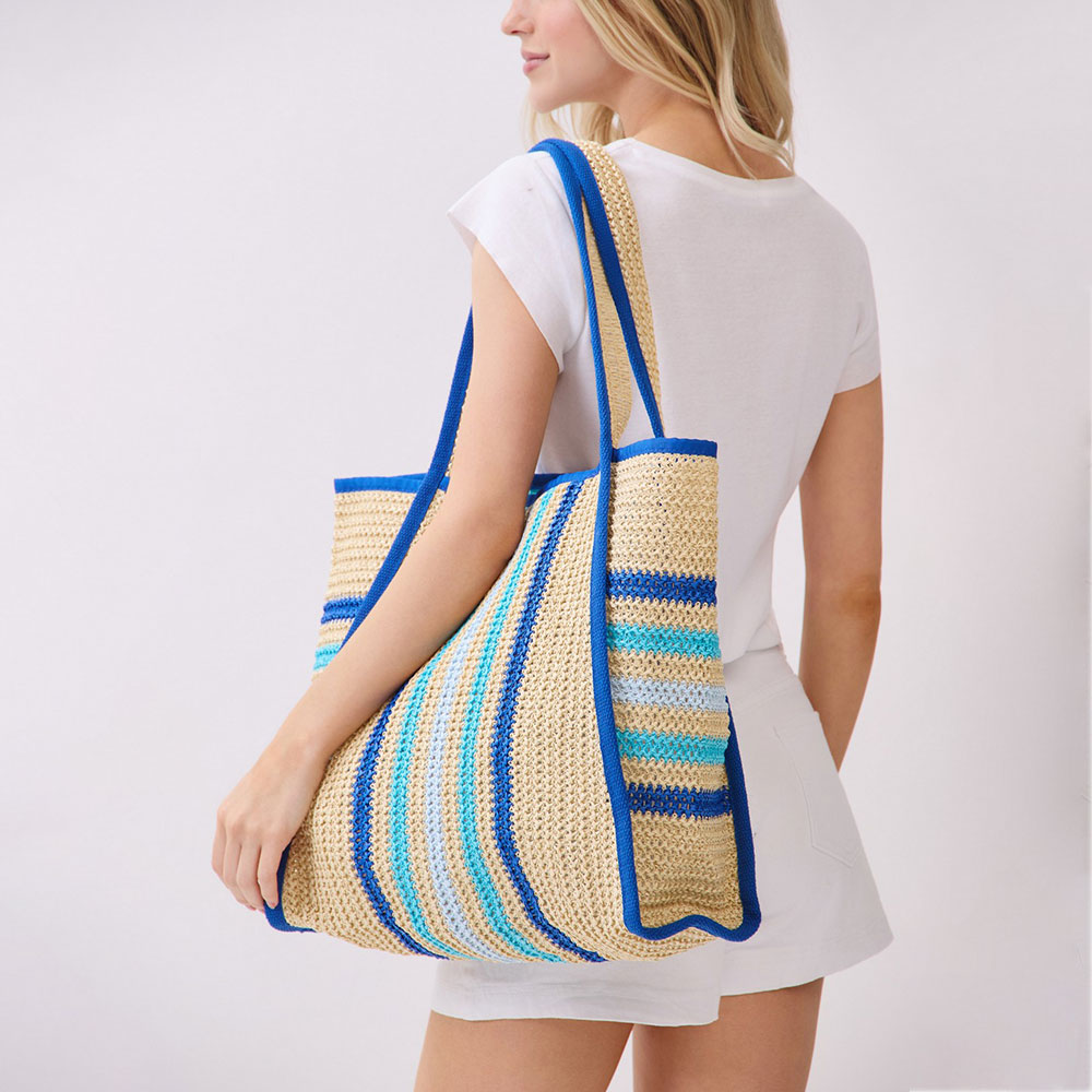 • Spacious oversized tote bag designed for everyday carry, travel, shopping, and beach use. Features a structured silhouette with vertical stripe detailing, comfortable shoulder straps, and an open interior for easy access. A versatile statement bag ideal for boutique and lifestyle collections.