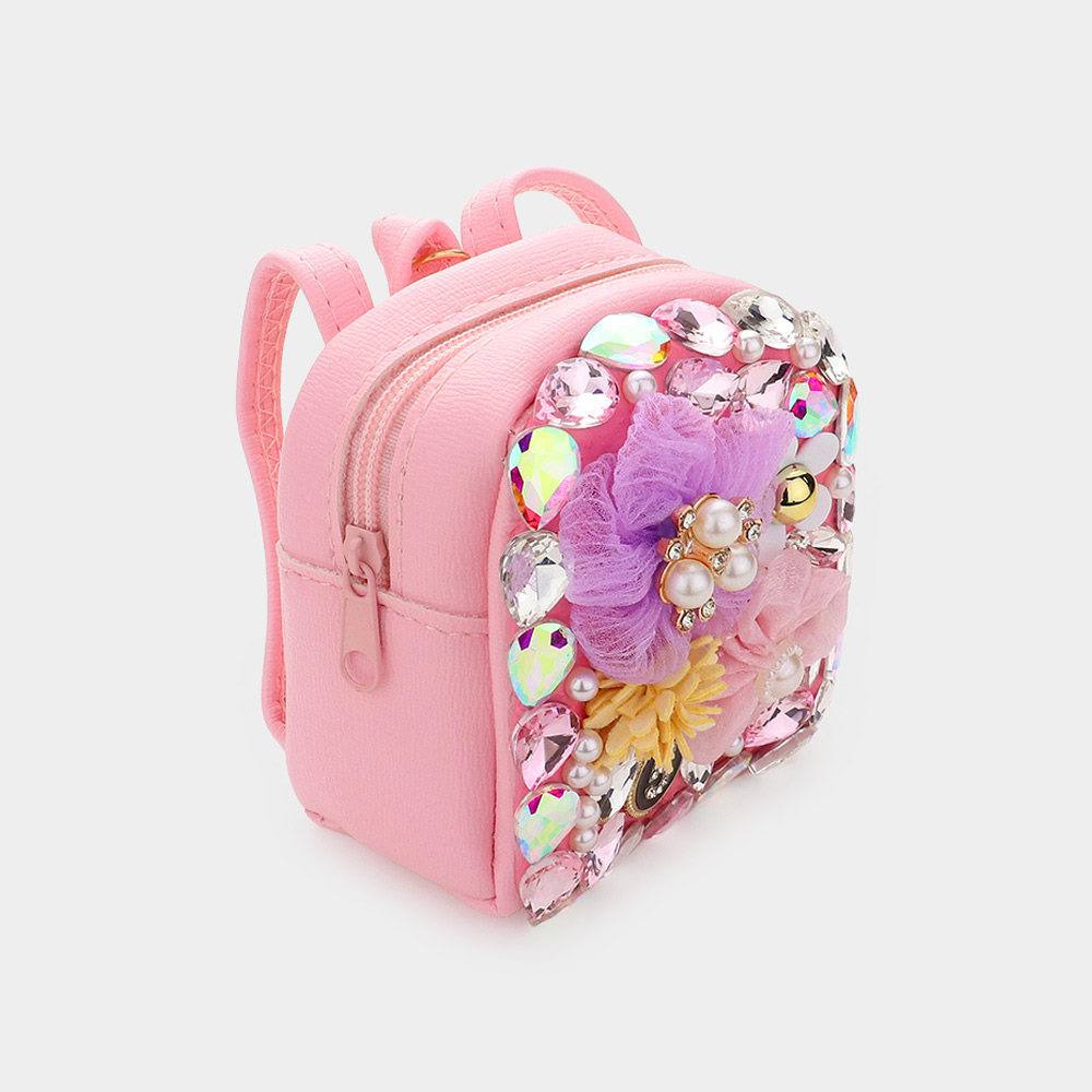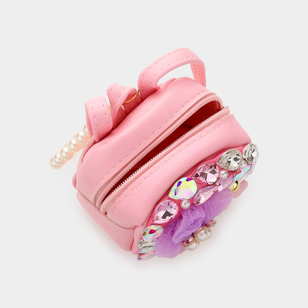 No. 5 Flower Stone Embellished Pearl Handle Micro Backpack Bag / Keychain