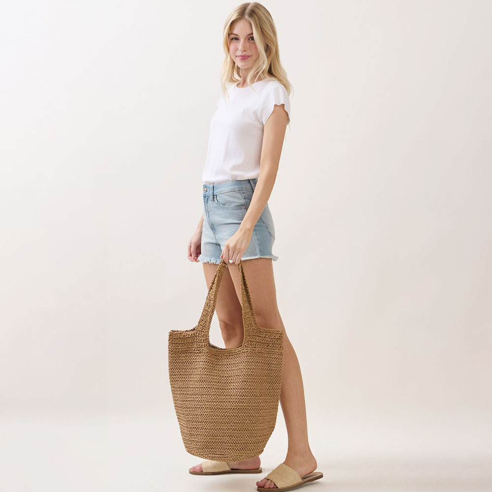 Details • Size : 17" X 13" X 10" • Inner Pocket • Magnetic Snap Closure • Material : 100% Paper • Spacious everyday tote bag designed for effortless summer styling and practical carry. Features a roomy interior ideal for beach days, shopping trips, travel, and casual outings. A lightweight carryall that pairs easily with warm-weather looks, making it a versatile boutique essential and a customer favorite for seasonal merchandising. • Handmade