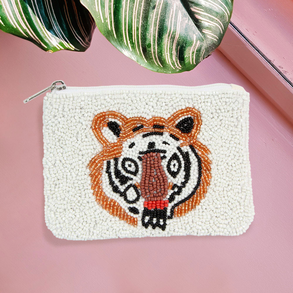 Seed Beaded Tiger Accented Mini Pouch Bag