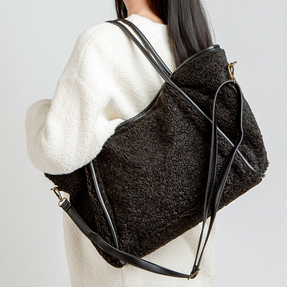 Details • Size : 20.5" X 12" X 4" • One Inside Zipper Pocket • Two Inside Slip Pockets • Zipper Closure • Material : 100% Polyester • This textured tote bag combines cozy style with everyday function. Featuring dual handles and a detachable shoulder strap, it offers versatile carrying options. Spacious interior makes it perfect for daily use, travel, or work while keeping essentials organized in style.