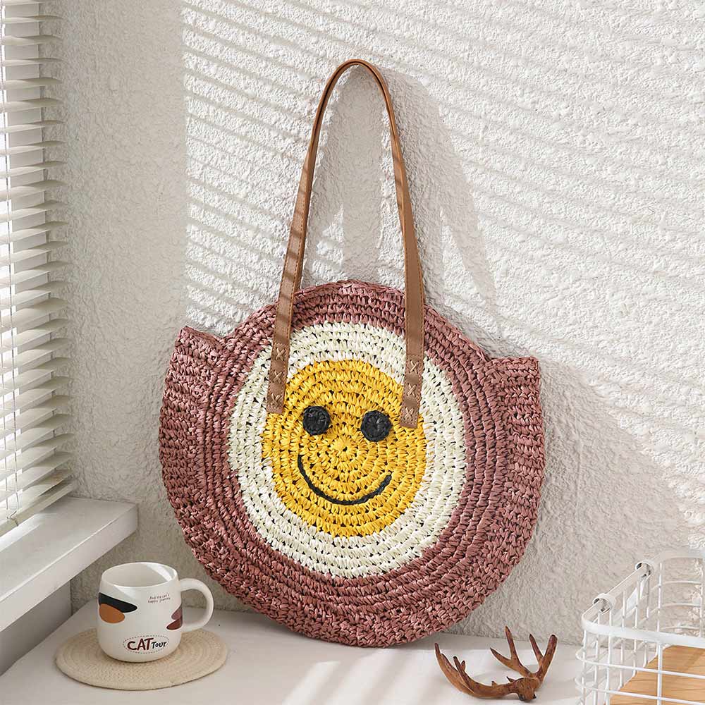 Smile Pointed Color Block Straw Round Shoulder Bag