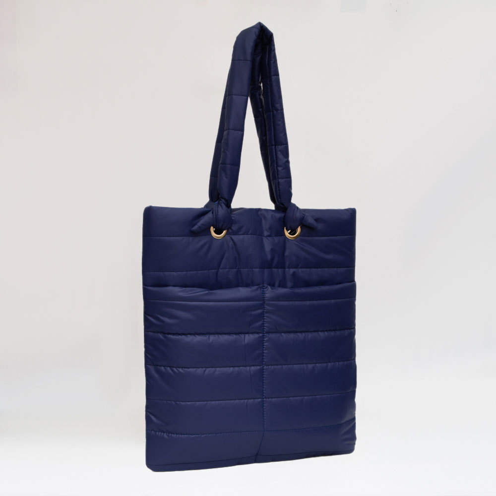 • A lightweight quilted tote bag featuring a sleek padded finish, roomy interior, and comfortable handles for effortless everyday carry. Its clean, modern silhouette makes it ideal for work, errands, or travel while adding a refined, cozy touch to any outfit.