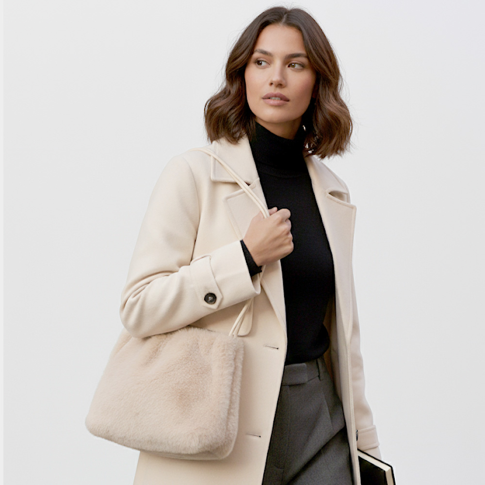 • Elevate your winter look with this soft faux fur shoulder bag, designed for comfort and sophistication. Featuring a structured silhouette and cozy texture, it’s perfect for everyday wear or elegant evenings, adding a touch of warmth and luxury to any outfit.