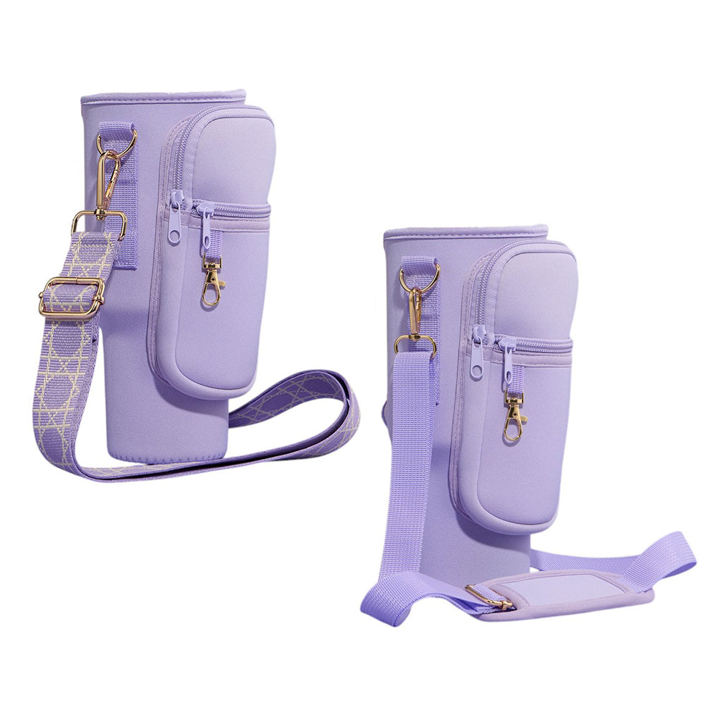 Solid Tumbler Carrier Holder Geometric Pattern Strap Crossbody Bag