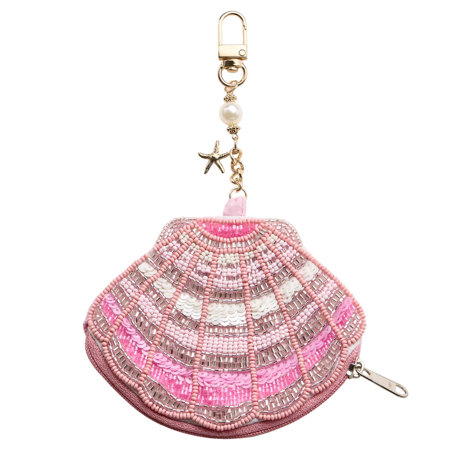 Starfish Charm Keychain Seed Beaded Shell Mini Pouch Bag