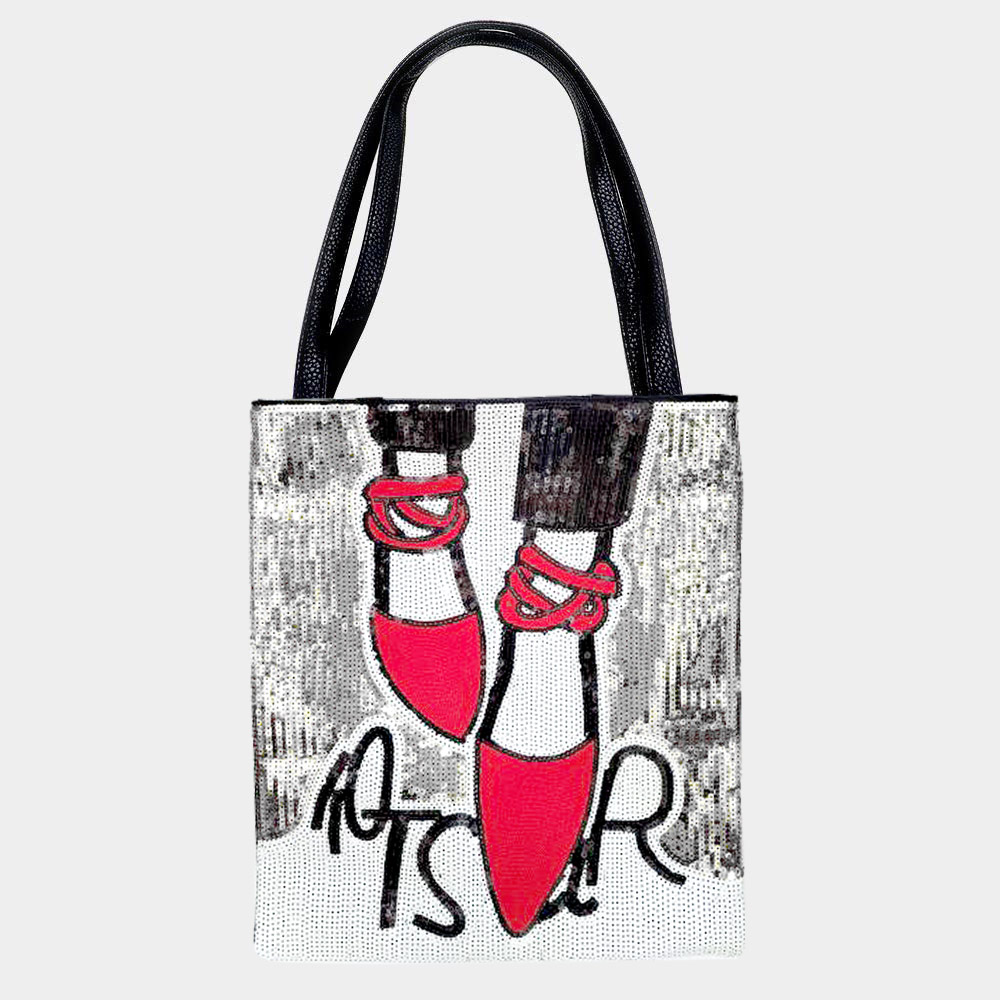 Stiletto Heel Sequin Faux Leather Shoulder Bag