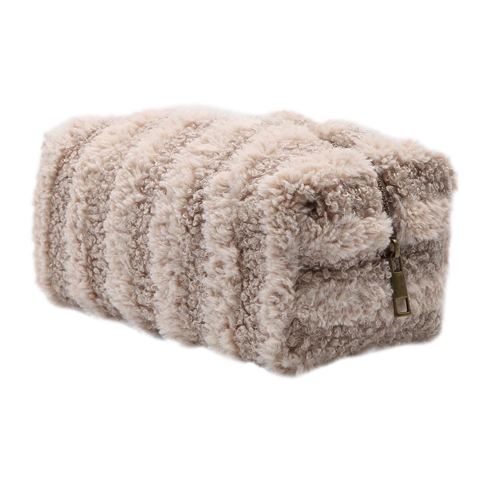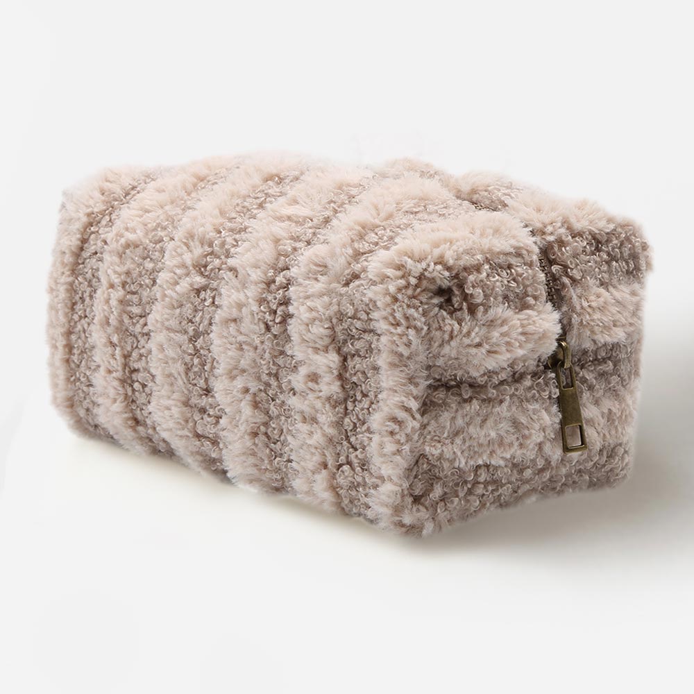 • Keep essentials organized with this soft plush striped zipper pouch. Featuring a cozy textured design and secure zip closure, it’s ideal for cosmetics, stationery, or travel accessories. A stylish and practical pouch for everyday use or gifting.
