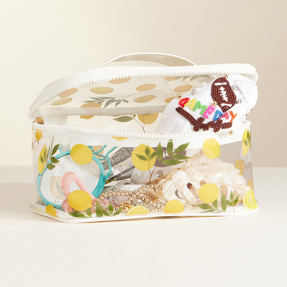 Top Handle Lemon Pattern Transparent Cosmetic Pouch Bag