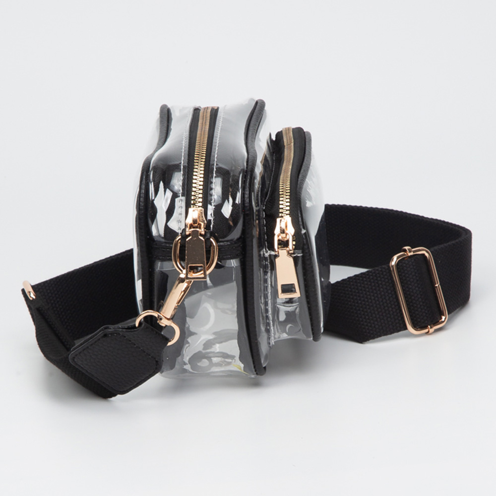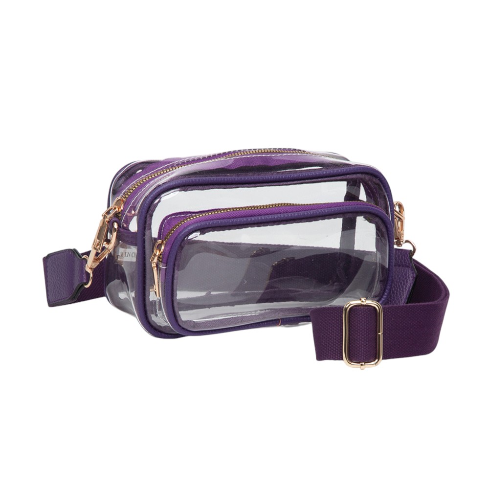Details • Size : 8" X 5" X 3.5" • Strap Size : 53" L / Detachable, Adjustable • One Outside Zipper Pocket • Zipper Closure • Be game day ready with this clear stadium-approved crossbody bag, featuring white trim, dual zip compartments, and an adjustable strap for hands-free comfort. Perfect for concerts, sporting events, festivals, and venues with clear bag policies, offering style, security, and convenience on the go.