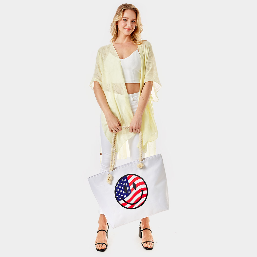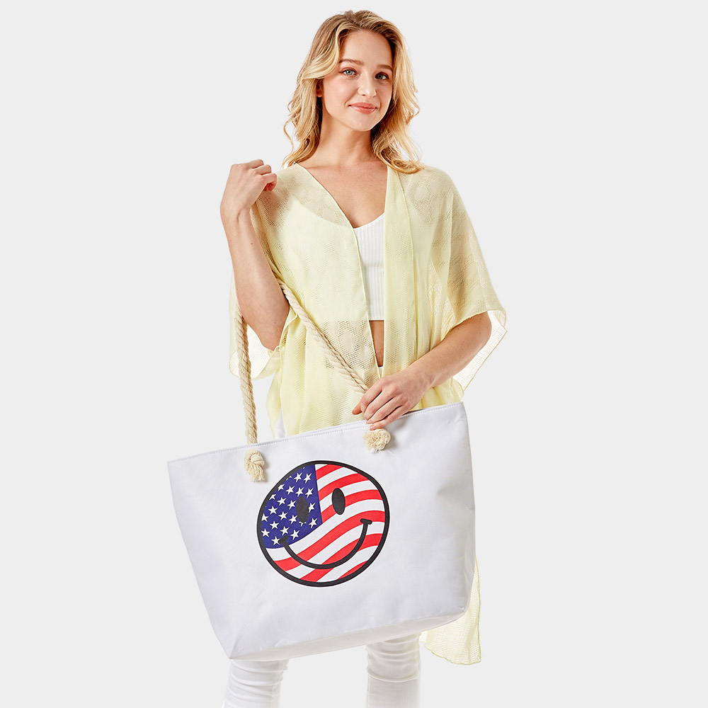 USA Flag In Smile Face Print Beach Tote Bag