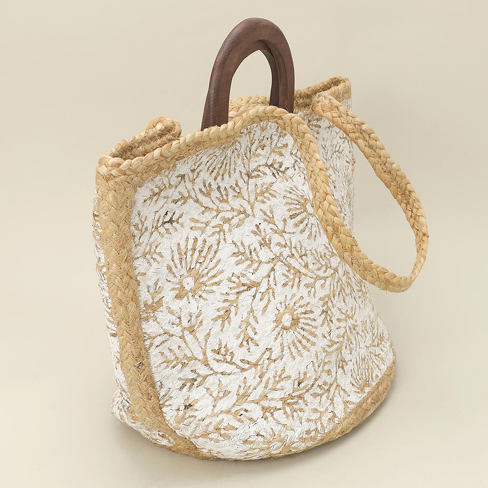 Details • Size : 19.5" X 11.75" X 13" • Top Handle Size : 3.75" L • Strap Size : 8.5" L • Spacious structured tote bag designed with a refined textured surface and a stylish top handle for everyday versatility. Roomy interior easily carries daily essentials while maintaining a polished silhouette. Ideal for shopping, travel, or casual outings, making it a great addition to boutique collections seeking timeless, functional statement accessories. • Made In India