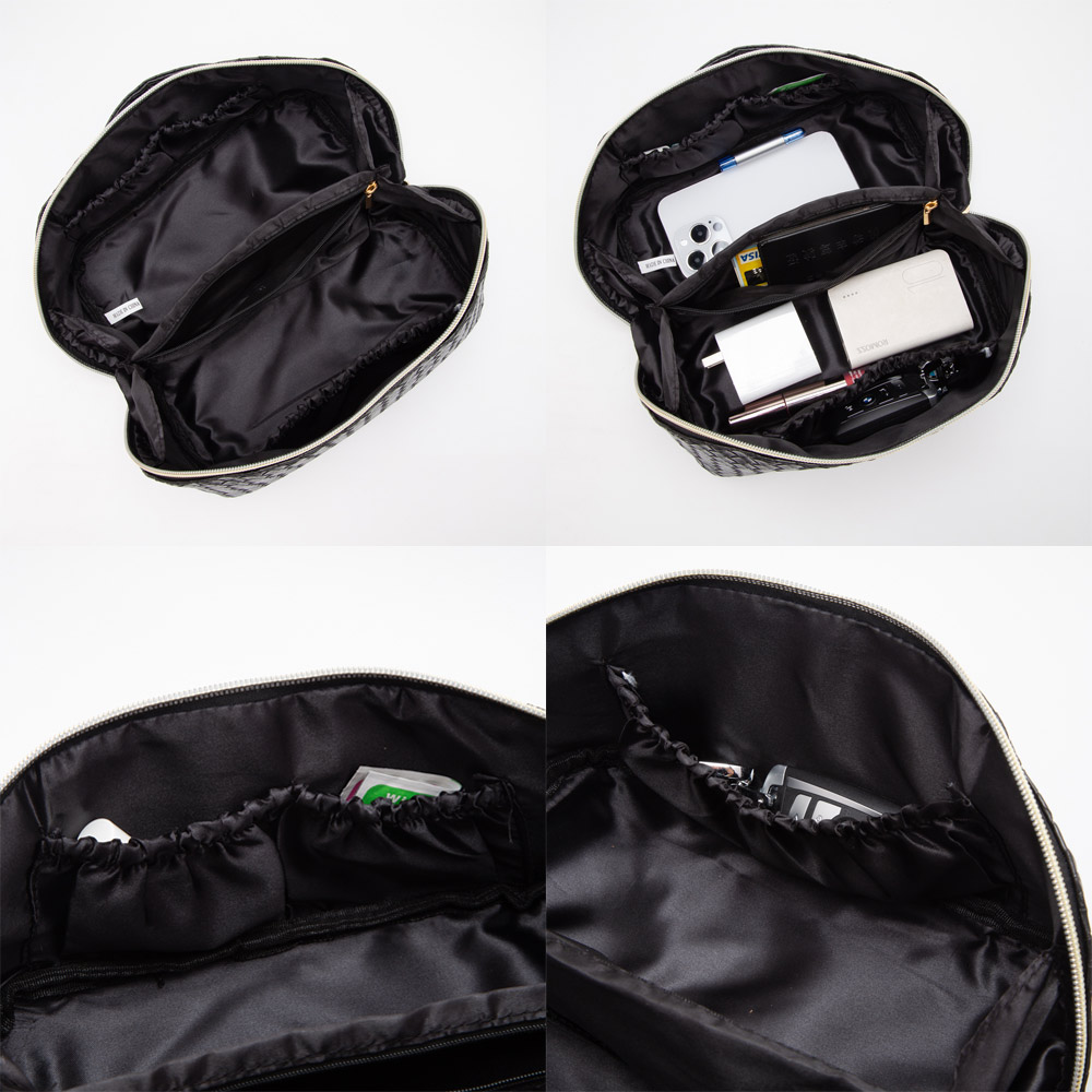 Woven Detailed Solid Tote Bag / Travel Cosmetic Bag