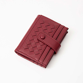 • Compact card holder wallet featuring a woven design, multiple card slots, clear ID window, and secure snap closure. Ideal for everyday use with a sleek, timeless style.