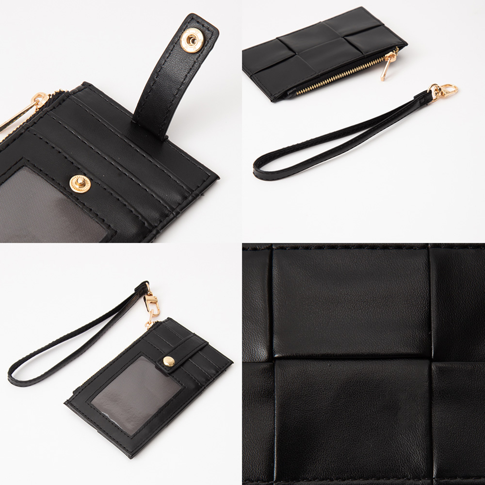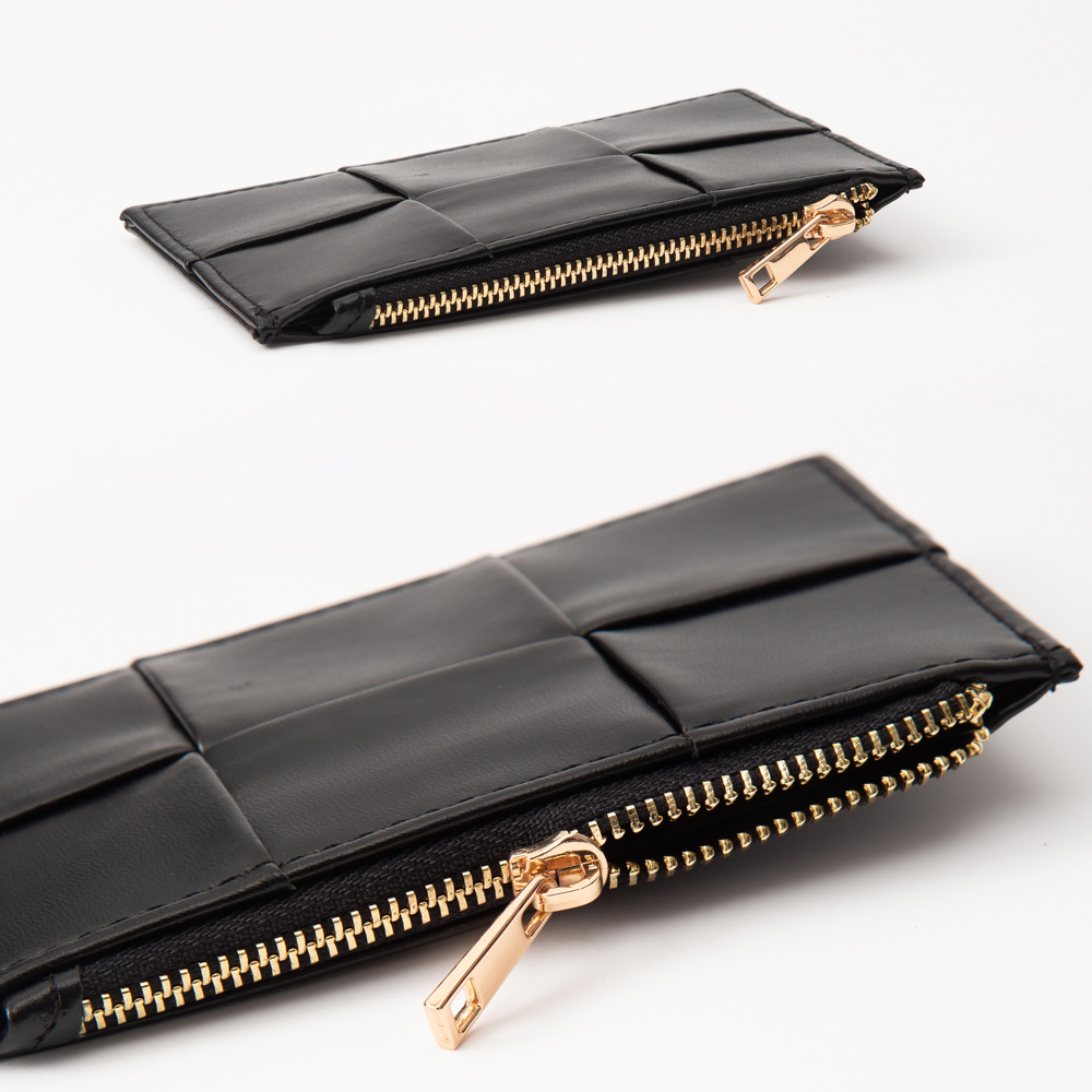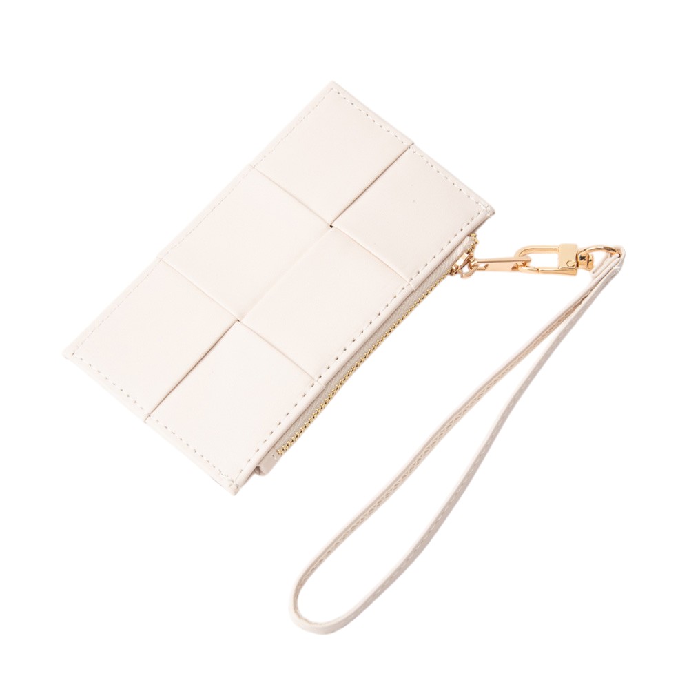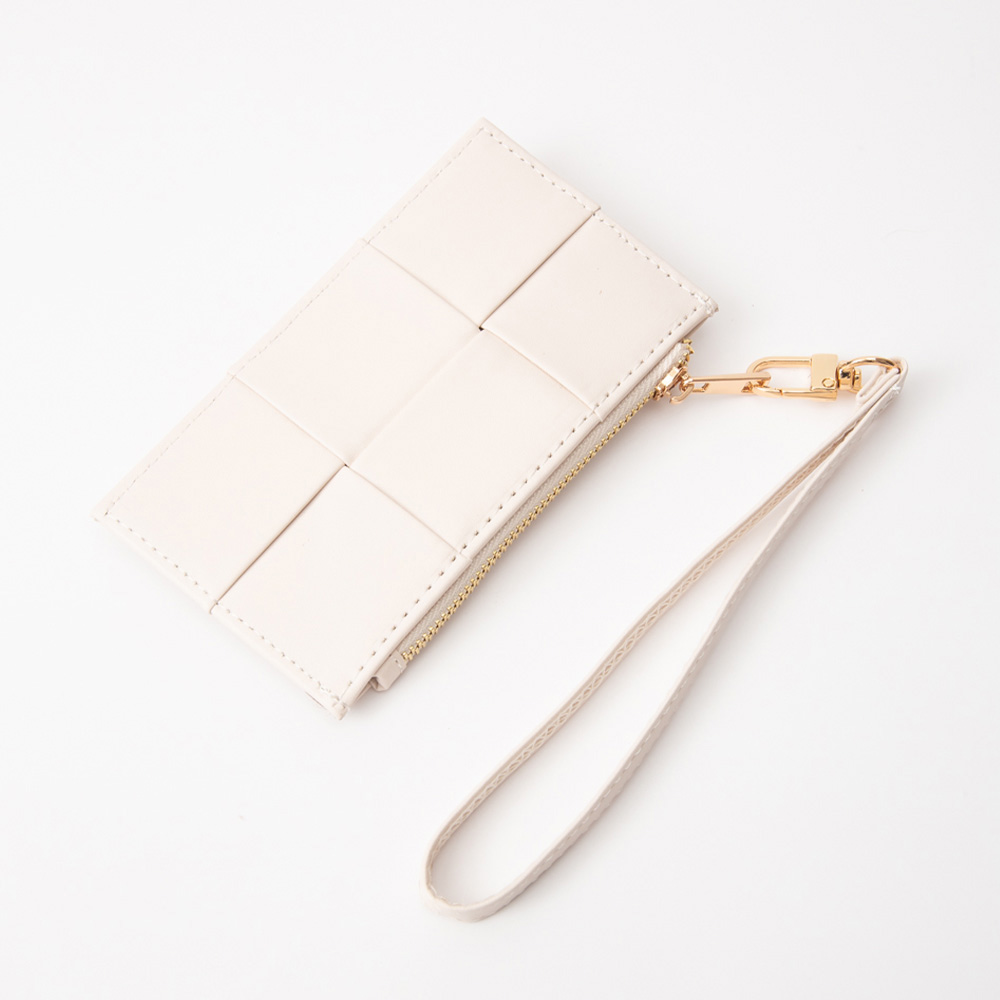 Faux Leather Weave Flat Wristlet Card / Coin Wallet