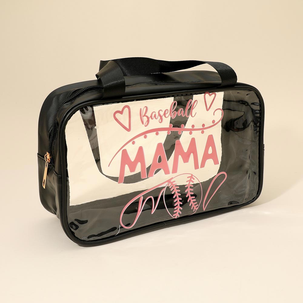 • A stylish clear organizer bag with “Baseball Mom” theme, designed for makeup, toiletries, and travel essentials. Features a roomy interior, easy-carry handles, and wipe-clean design, perfect for daily organization, trips, gym use, or thoughtful gifting.