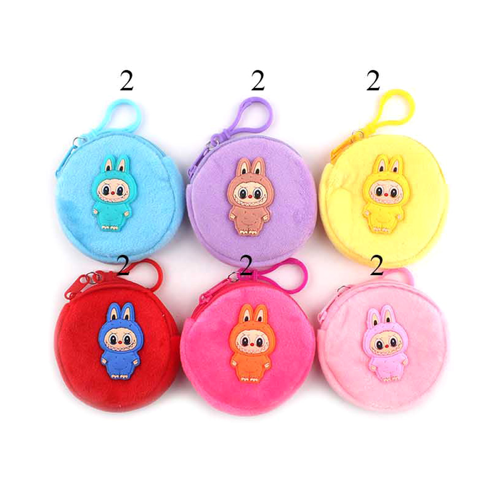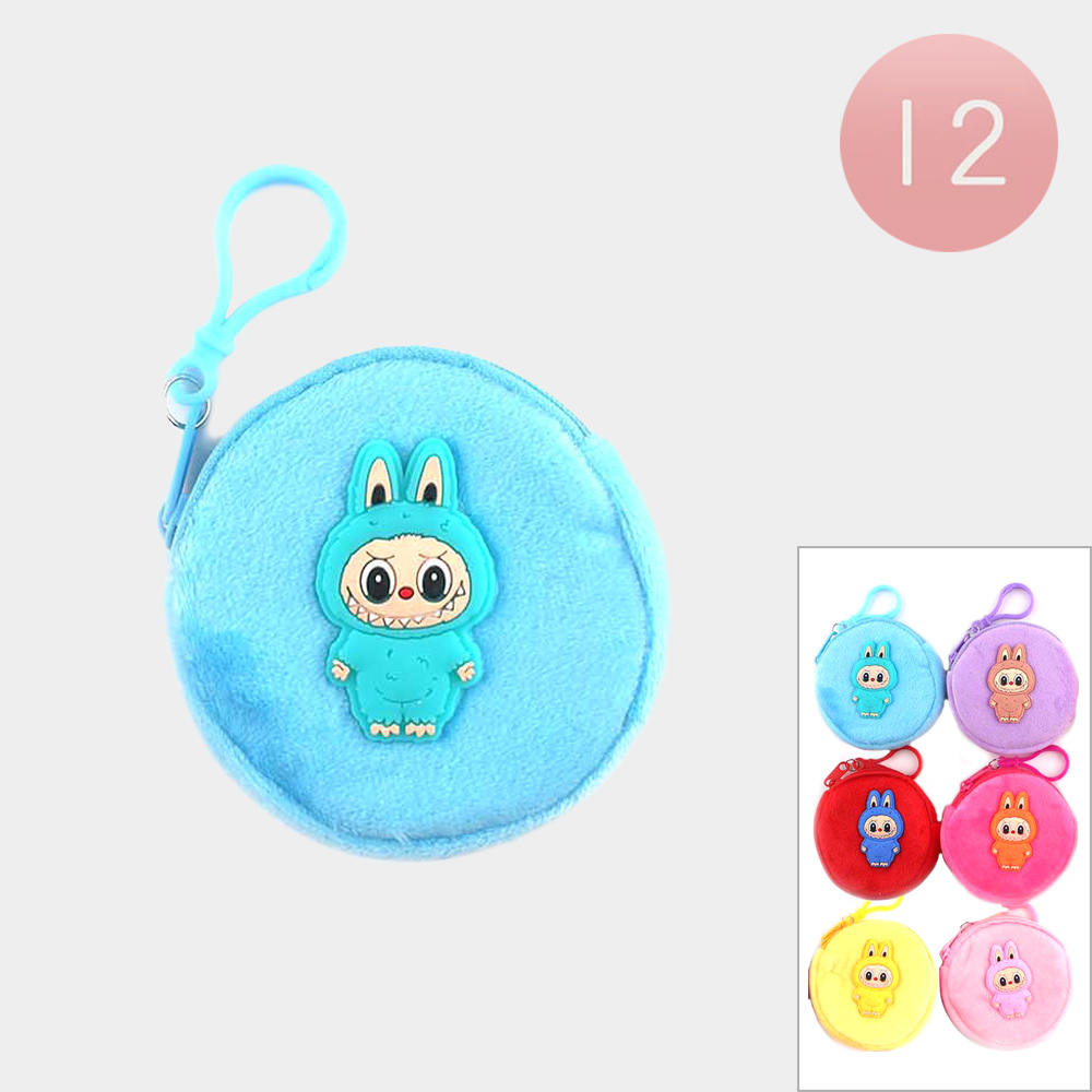 12PCS - Character Embroidered Fuzzy Round Coin Purses
