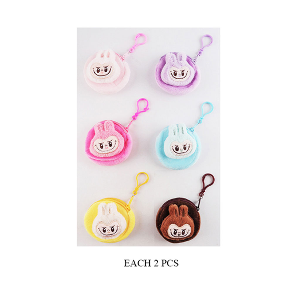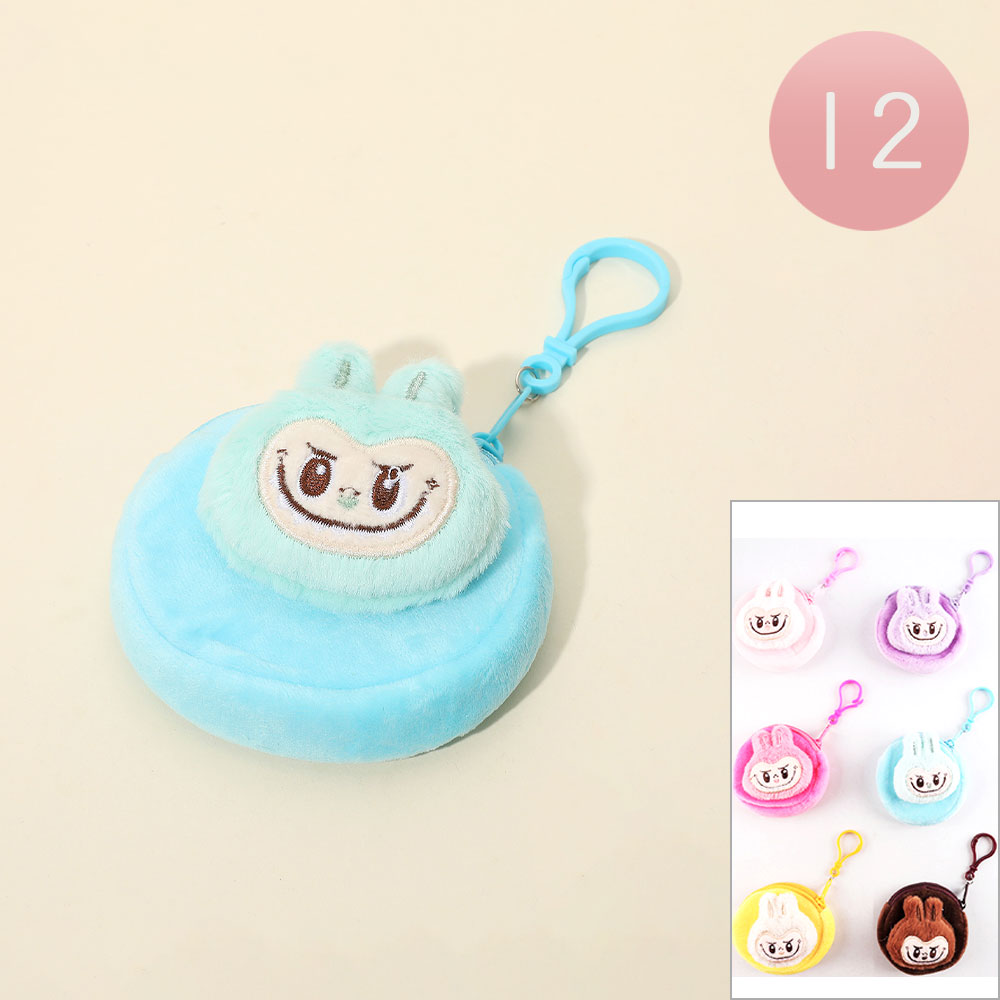 12PCS - Fuzzy Plush Monster Bunny Character Coin Purses / Keychains / Bag Charms