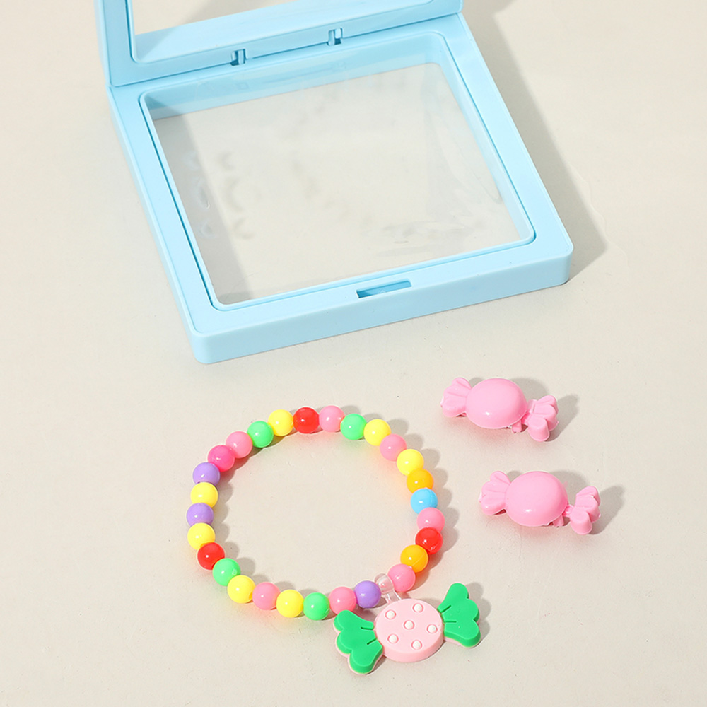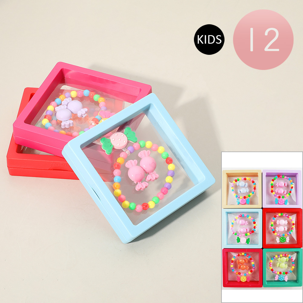 12 SET OF 2 - Kids Candy Charm Beaded Stretch Bracelet Hair Clip Set