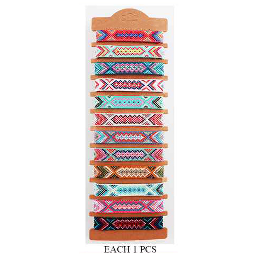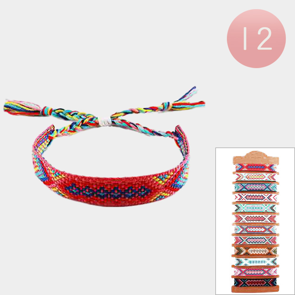 12PCS - Bohemian Aztec Pattern Braided Cinch Pull Tie Bracelets