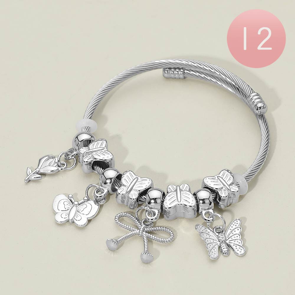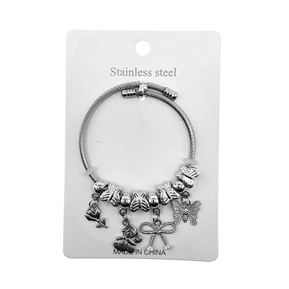 Details • Size : 0.2" H, 1.25" L • Adjustable • This adjustable cable bracelet features delicate butterfly charms paired with smooth accent beads for a graceful, feminine look. Designed for easy wear and flexible sizing, it adds playful movement and elegant detail to everyday outfits or special occasion styling, making it a charming addition to boutique jewelry collections and gift assortments.