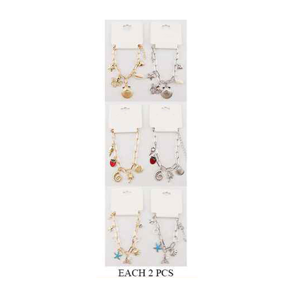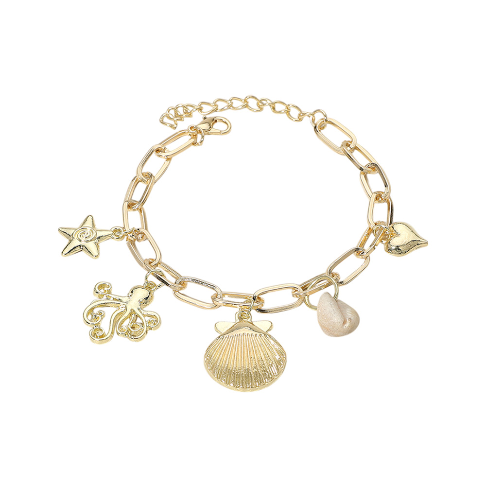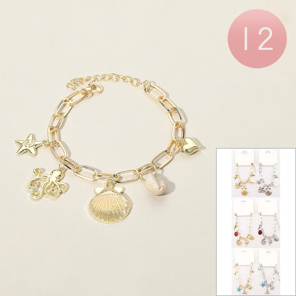 12PCS - Metal Seashell Starfish Octopus Heart Puka Shell Charm Station Paperclip Chain Bracelets