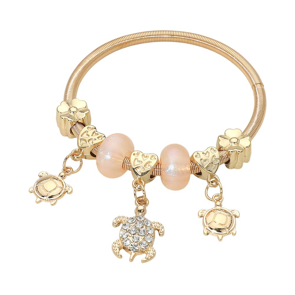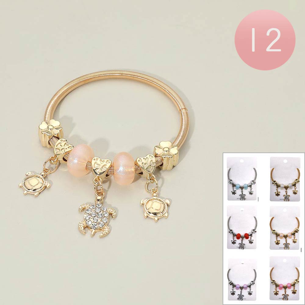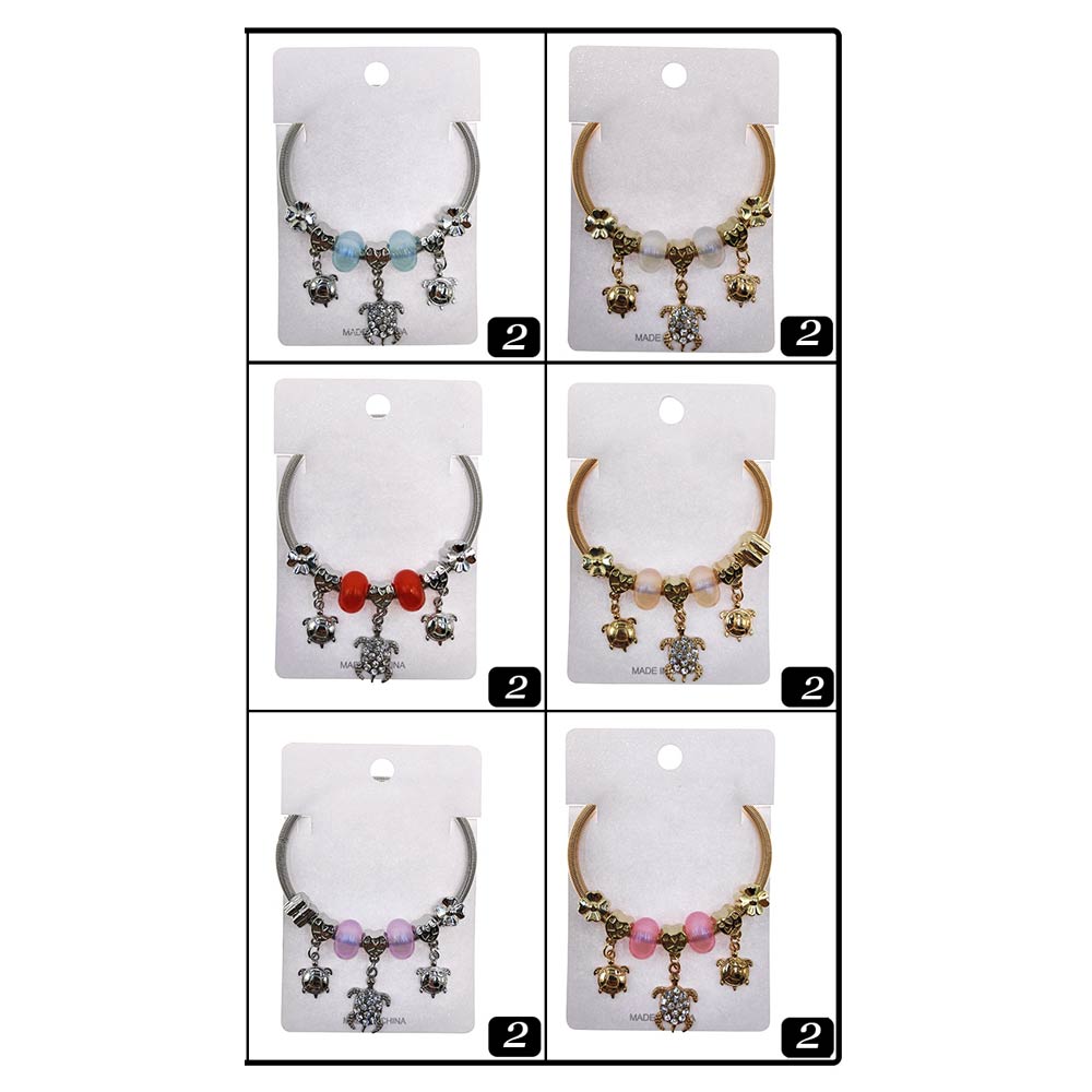 Details • Size : 1.5" H • Stretchable • This stretchable charm bracelet features playful turtle-themed charms paired with decorative beads for a fun yet stylish look. Designed for comfortable everyday wear, it’s ideal for beach-inspired collections, gift assortments, and seasonal displays, offering an eye-catching accent that appeals to animal and ocean-themed jewelry lovers.