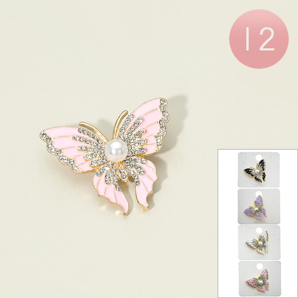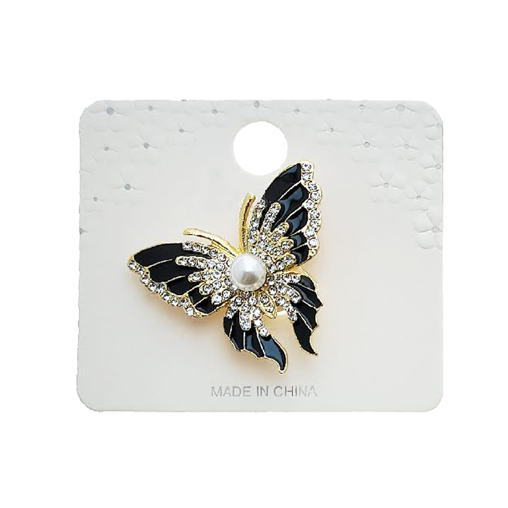 Details • Size : 1.5" X 1.3" • Pin Brooch • Charming butterfly brooch adorned with shimmering stone detail and a delicate centerpiece for a graceful touch. Perfect for pinning to jackets, scarves, hats, or bags, this accessory adds elegance and whimsy, making it a delightful gift or collection piece.