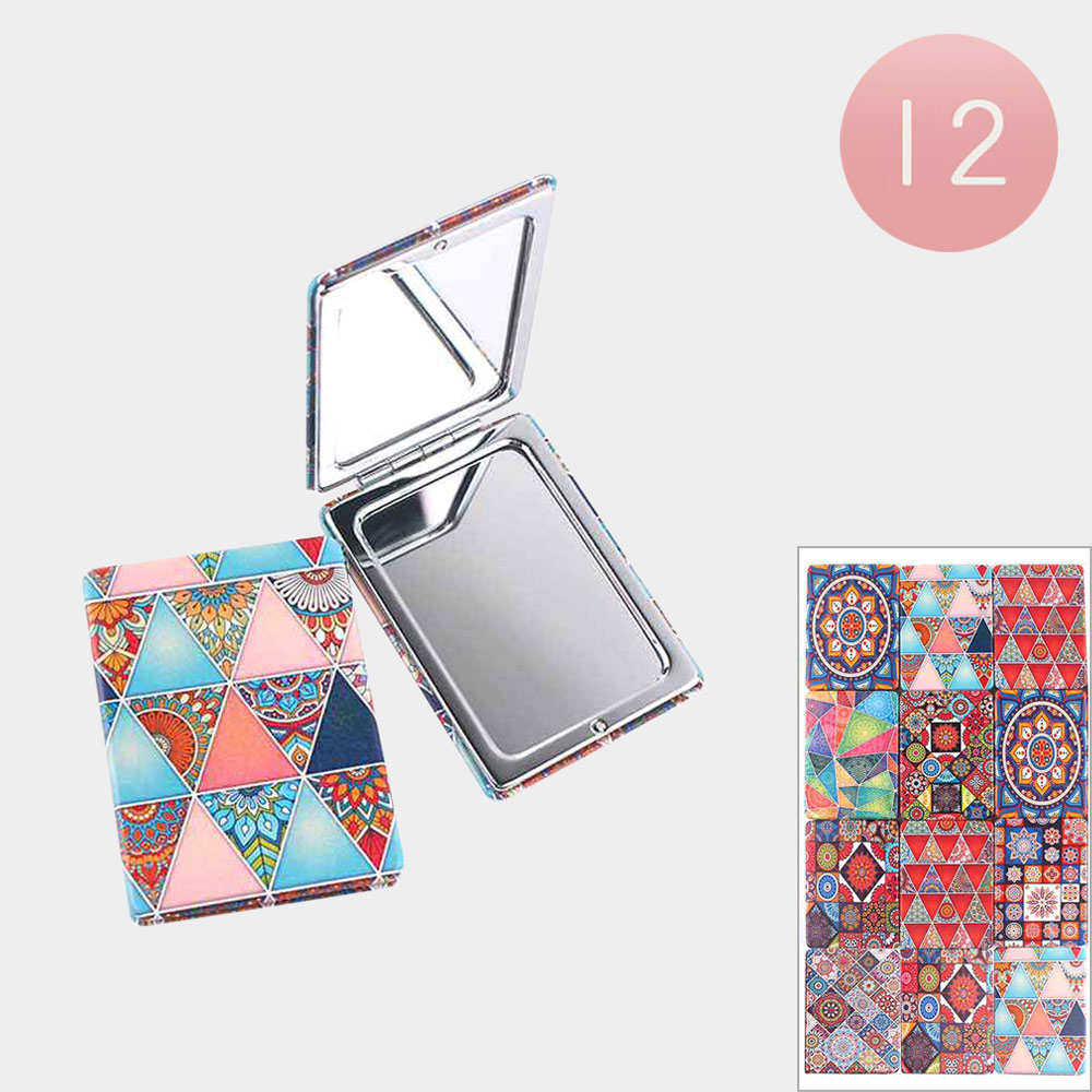 12PCS - Abstract Pattern Printed Cosmetic Mirrors