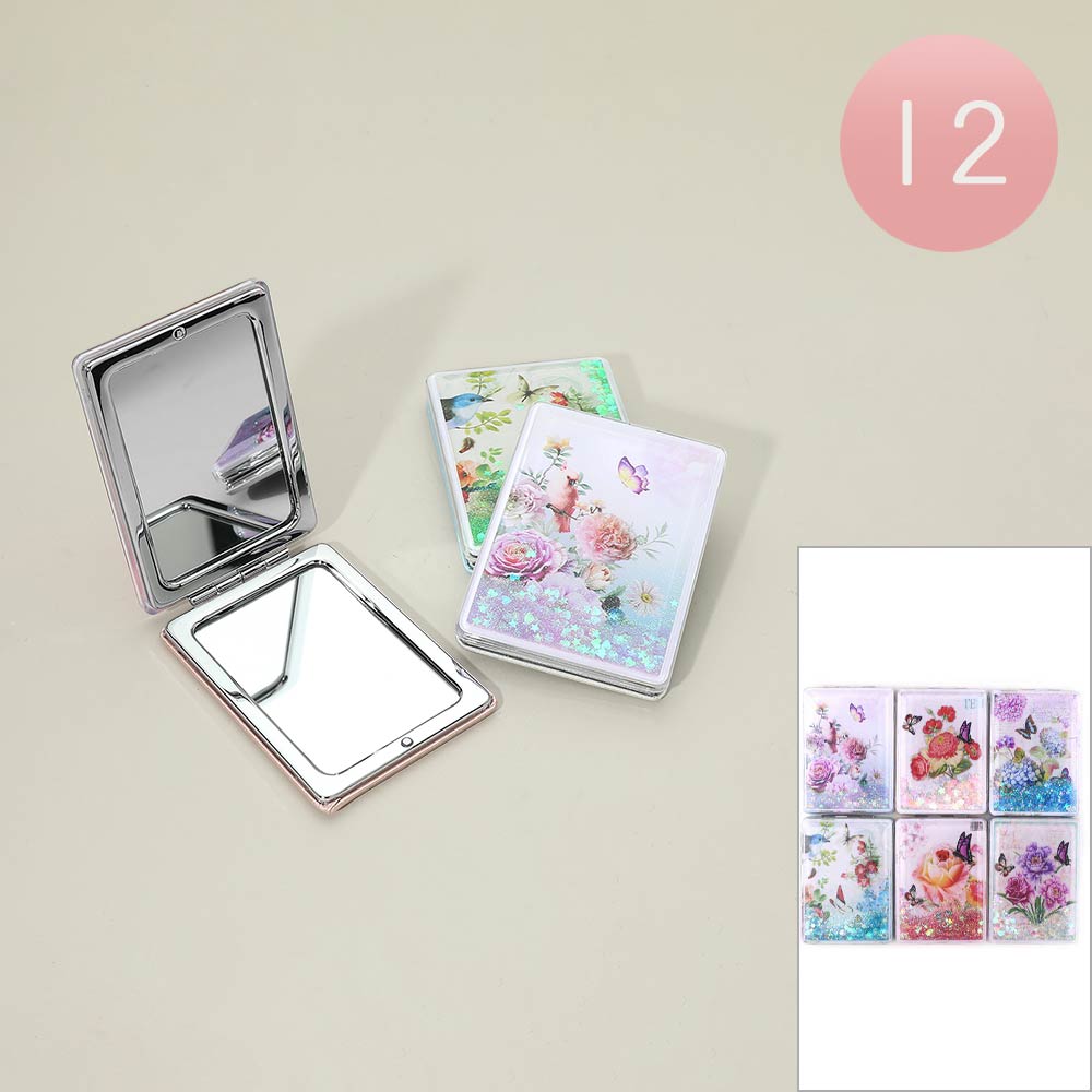 Details • Size : 2.4" X 3.3" • 2 In 1 - Plain Mirror And Magnifying Mirror • This floral butterfly printed compact mirror features a slim folding shape with a clear reflective surface for everyday touch-ups on the go. Easy to carry in handbags, cosmetic pouches, or travel bags, it’s ideal for daily use, gifting, party favors, or boutique accessory displays. A practical and stylish personal care essential.
