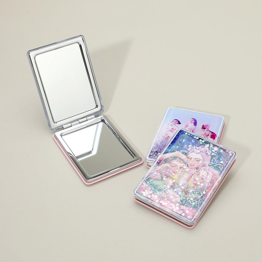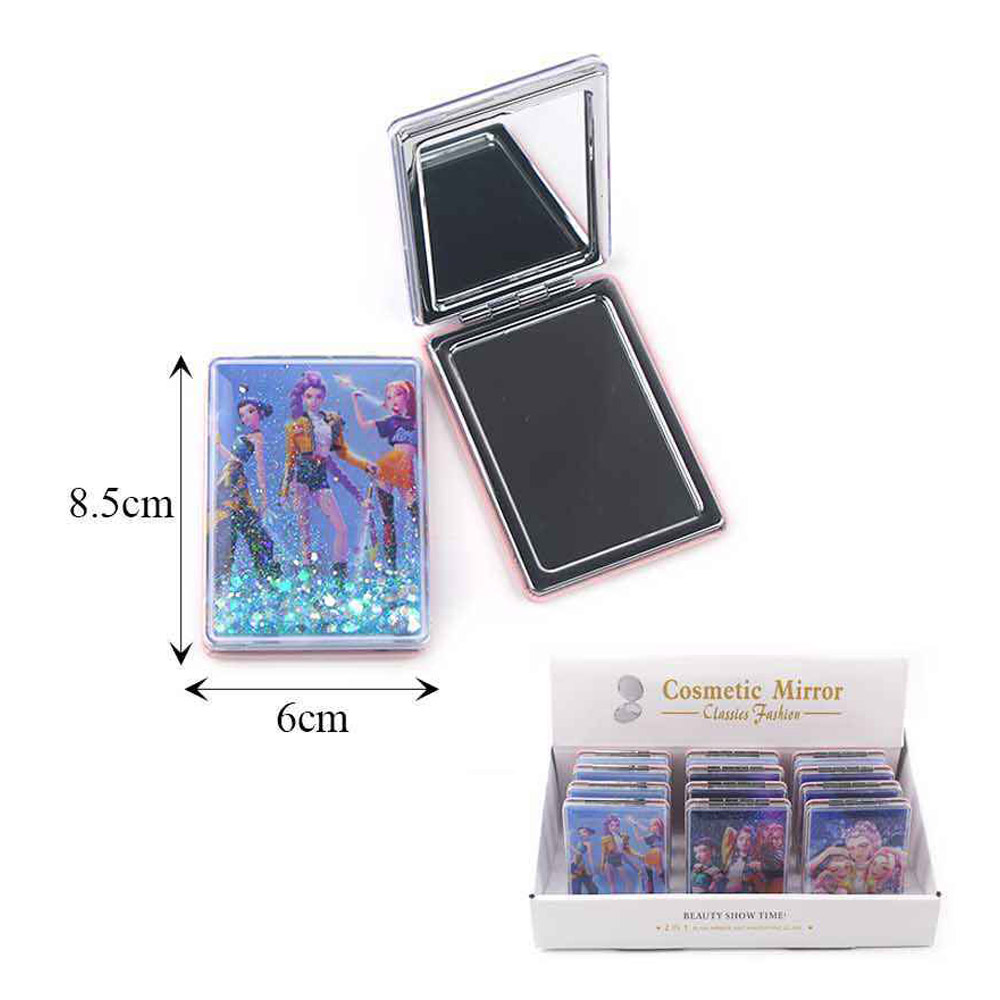Details • Size : 2.4" X 3.3" • 2 In 1 - Plain Mirror And Magnifying Mirror • Glitter kpop demon hunters HUNTRIX character compact pocket mirror featuring eye-catching illustrated designs and a folding double-mirror layout. Designed for quick touch-ups on the go, this portable accessory is ideal for gift shops, pop culture assortments, trend-driven displays, and impulse-buy collections seeking playful style and everyday practicality.