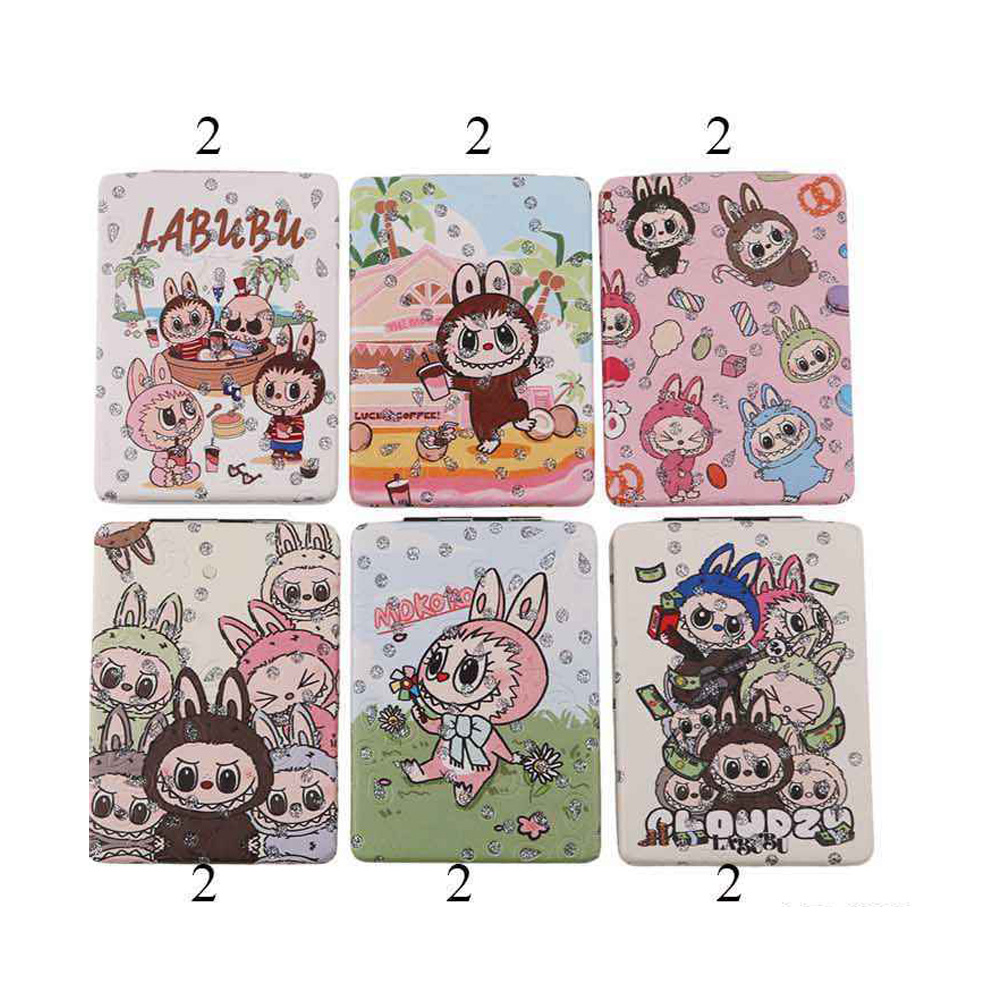 Details • Size : 2.4" X 3.3" • 2 In 1 - Plain Mirror And Magnifying Mirror • Stylish card holder featuring playful cartoon character designs with sparkling rhinestone embellishments. Lightweight and compact, perfect for securely carrying cards while adding a unique and fun touch to daily essentials.