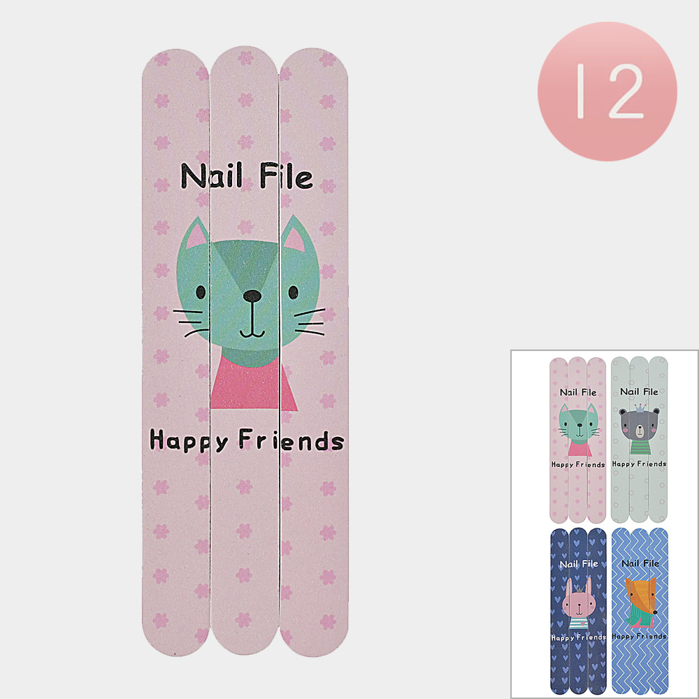 12 SET OF 3 - Animal Happy Friends Message Printed Nail Files