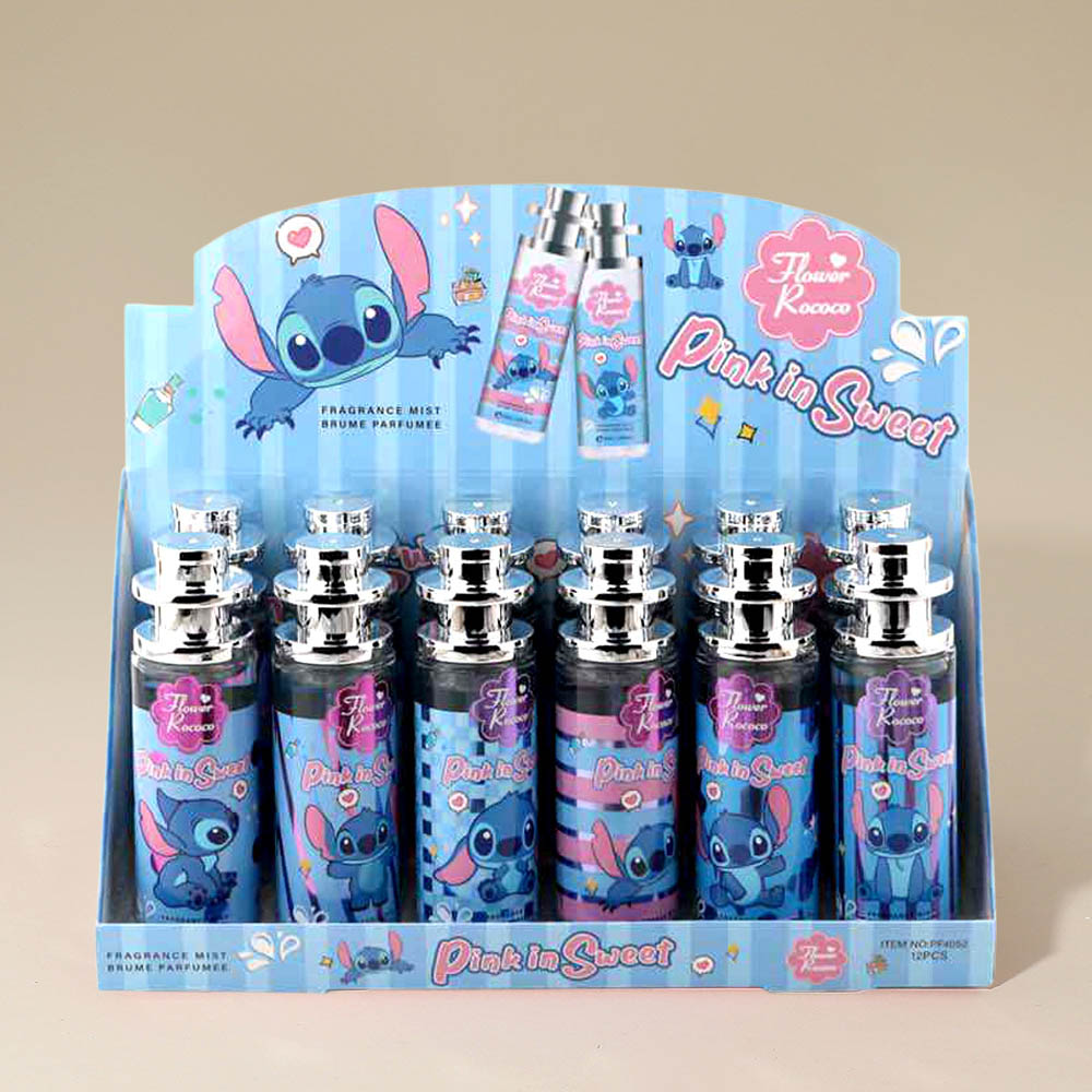 Details • Size : 50ml (1.69fl.oz) • Discover the Pink in Sweet fragrance mist set, designed with fun character-themed packaging. This 12-pack display is perfect for gifting, personal use, or retail. Refreshing scent in compact spray bottles makes it ideal for travel, everyday wear, and adding a playful touch to your fragrance collection.