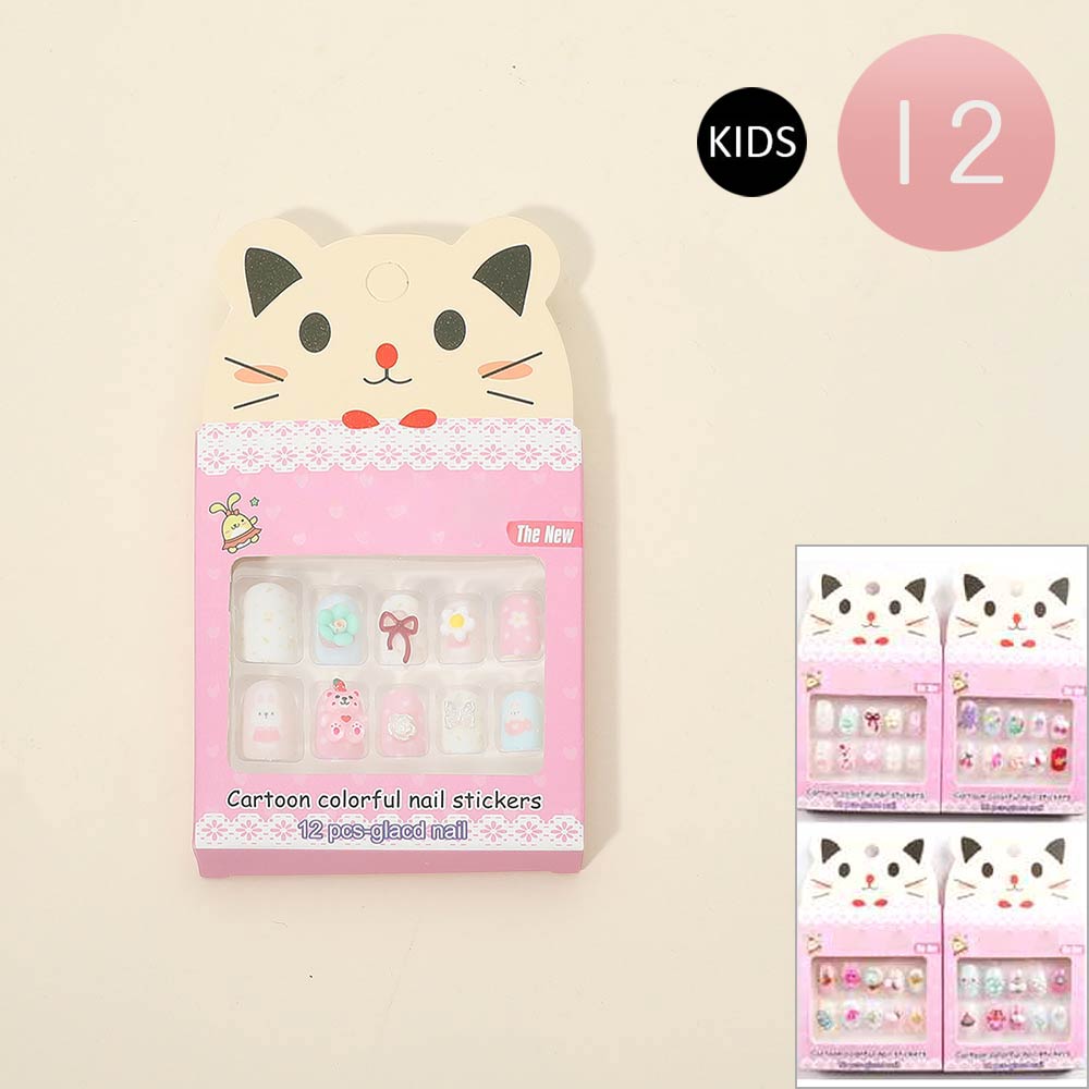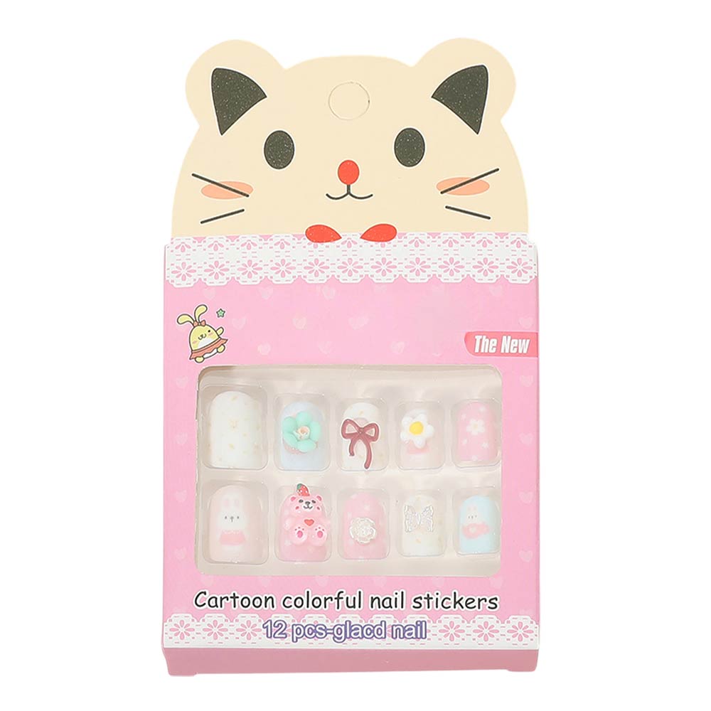 Details • Size : One Size • This kids cartoon press on nail set includes playful pre-designed nail decals made for easy, mess-free application. Created for little hands, each set offers fun character and cute accent designs that peel and stick effortlessly. Ideal for parties, playdates, gift bundles, and kids beauty accessories, these nail stickers encourage creativity, self-expression, and imaginative play without tools or drying time.