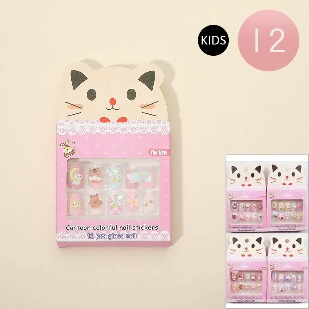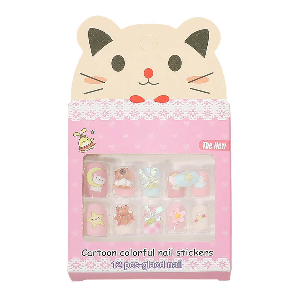 Details • Size : One Size • This kids cartoon press on nail set features 12 fun, pre-designed nail decals created for easy peel-and-stick use. Designed for little hands, it offers playful characters and cute accents that apply quickly without tools or drying time. Perfect for playdates, parties, gift sets, and kids beauty collections, these nail stickers encourage creativity, imagination, and mess-free self-expression.