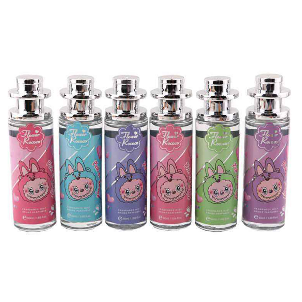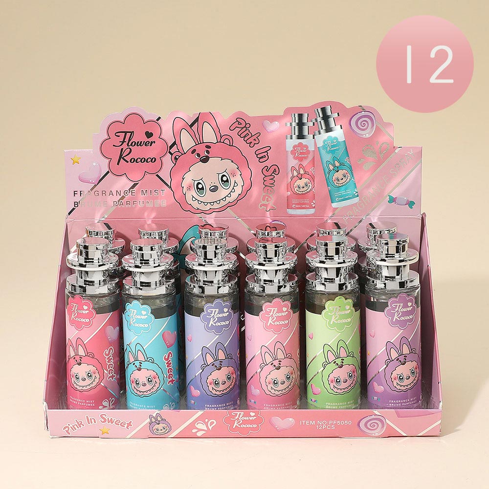 Details • Size : 1.4" X 4" • This adorable fragrance mist set features charming monster bunny character-themed bottles in assorted scents, perfect for gifting or daily use. The compact design makes each spray easy to carry, while the vibrant display adds playful appeal to any collection or retail space.